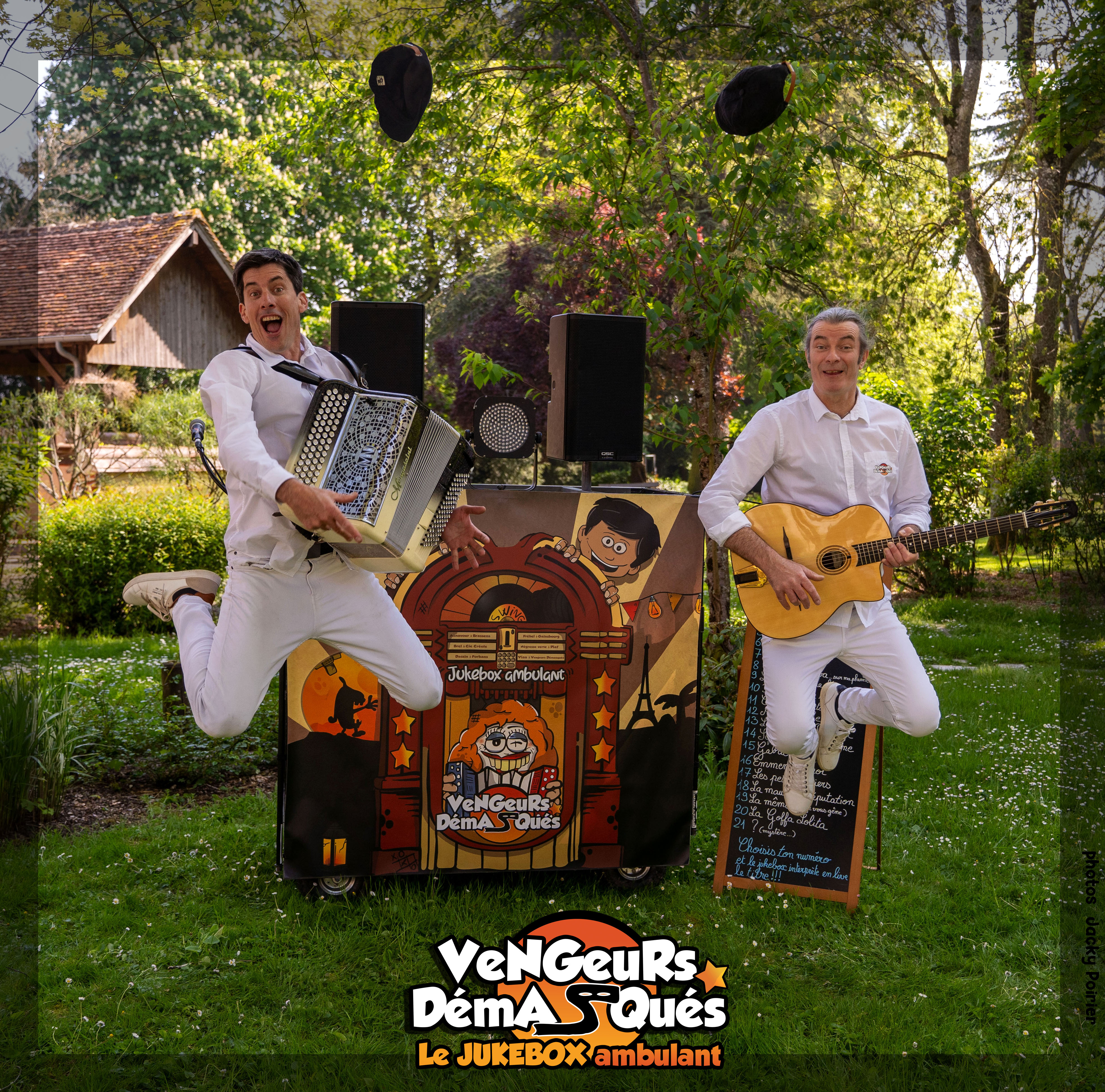 Vous n'avez rien à faire, l'ensemble est autonome et s'adapte à votre événement en plusieurs sessions sur la journée. Le Jukebox a déjà joué pour les fêtes de village, Offices de tourismes, marchés culturels, festivals & manifestations culturelles, très gros parcs d'attractions et lieux touristiques,.... L'accordéon, la guitare swing, et le kick rythmique embarqueront vos festivaliers pour une vraie ambiance joyeuse, dansante et chantante ! Une alternative originale et rapide à installer à la Grande Guinguette Chansons Françaises sur scène des Vengeurs Démasqués.